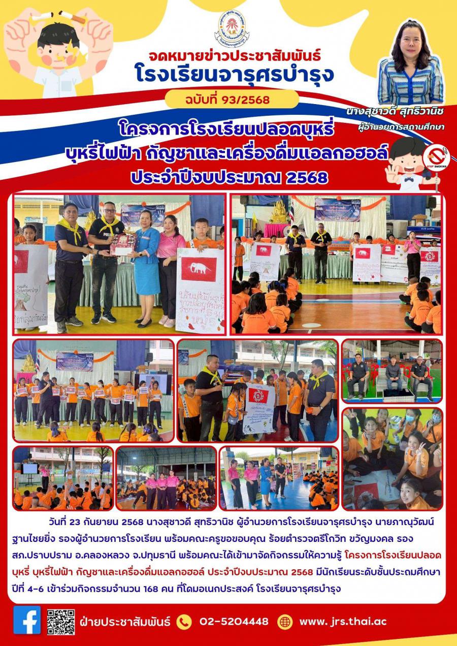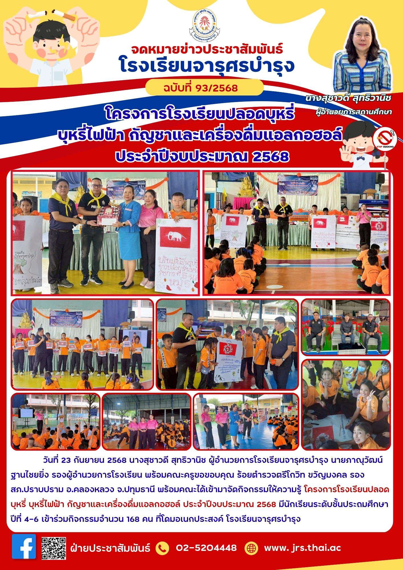 โครงการโรงเรียนปลอดบุหรี่ บุหรี่ไฟฟ้า กัญชาและเครื่องดื่มแอลกอฮอล์ ปีงบประมาณ2568
