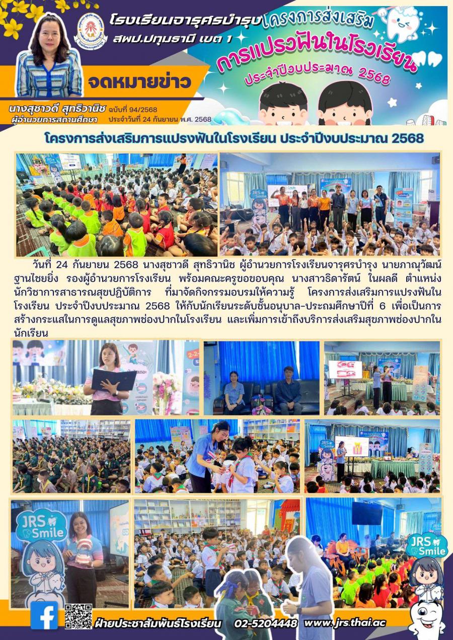 โครงการส่งเสริมการแปรงฟันในโรงเรียน ประจำปีงบประมาณ 2568