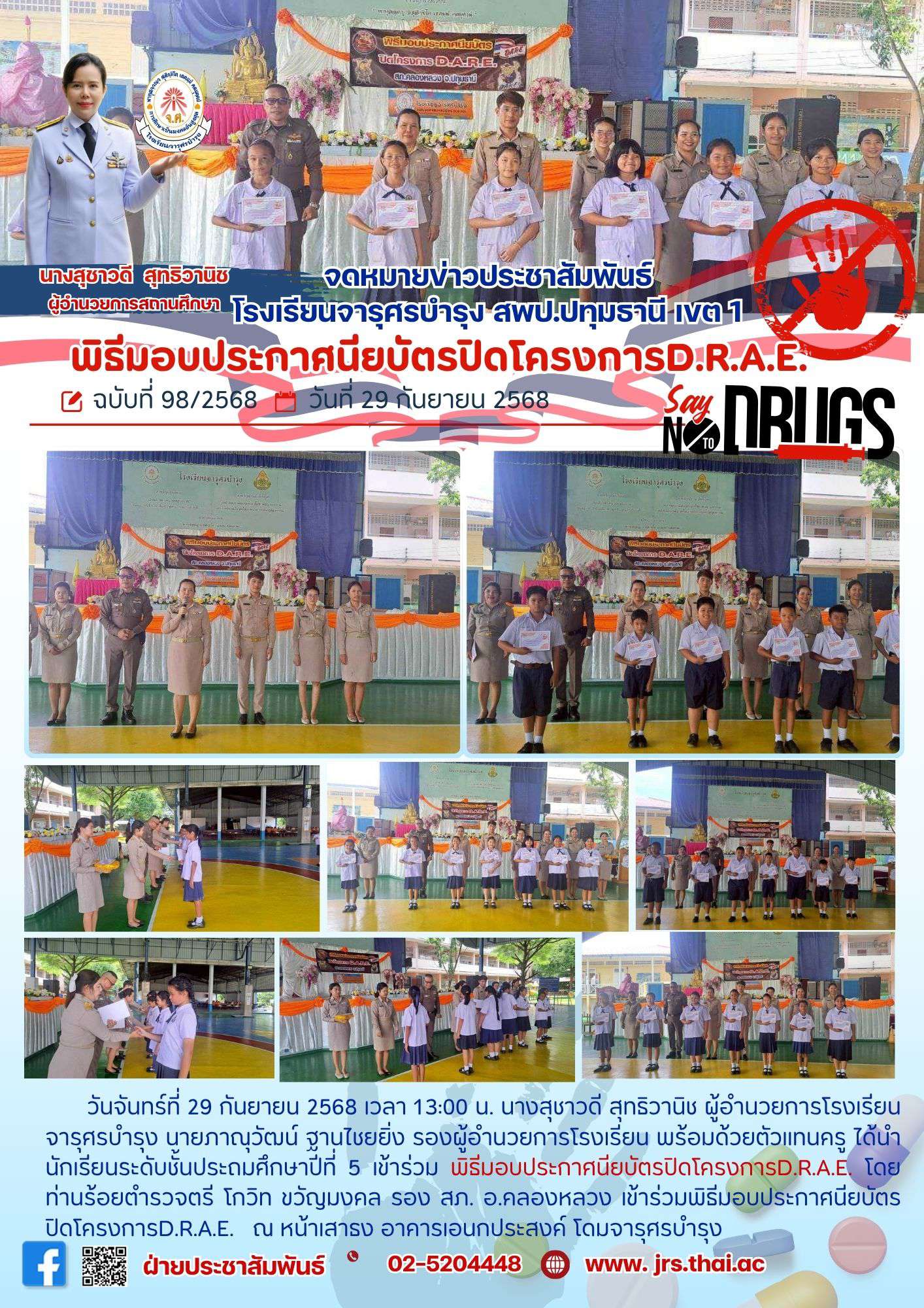 พิธีมอบประกาศนียบัตรปิดโครงการ D.R.A.E. ปี 2568