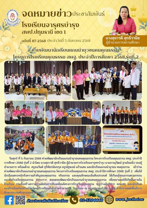 กิจกรรมค่ายพัฒนานักเรียนแกนนำยุวชนคนคุณธรรม โครงการโรงเรียนคุณธรรม สพฐ. ประจำปี 2568 (รุ่นที่2)
